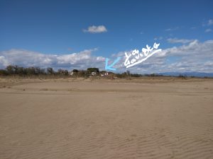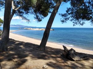 Den unendlich lang erscheinenden Sandstrand kann man, vorbei an verschiedenen (noch geschlossenen) Campingplätzen, bis „Sant Marti De Empuries“ entlang laufen.