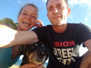Hier an diesem weitläufigen Strand, etwa 40 min. Fußweg vom Platz entfernt, ist FKK erlaubt und nirgends steht etwas auf Schildern von Hundeverboten…