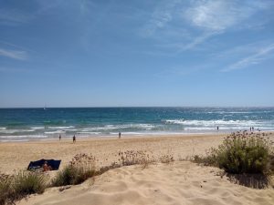 Fuseta war schon nicht sooo schlecht – Nein; Fuseta war richtig gut! Allerdings war es dort mit Timmy dem Hund so, dass wir recht lange zu einem Strandabschnitt laufen mussten wo unser kleiner Rudelführer frei rumlaufen konnte. Zudem waren dort Dünen vorgelagert, so dass man an dem Strandabschnitt wo wir unbeschwert unser Hunde-Mensch-Leben ausleben konnten, nicht schwimmen konnten. Das Wasser war sehr flach…