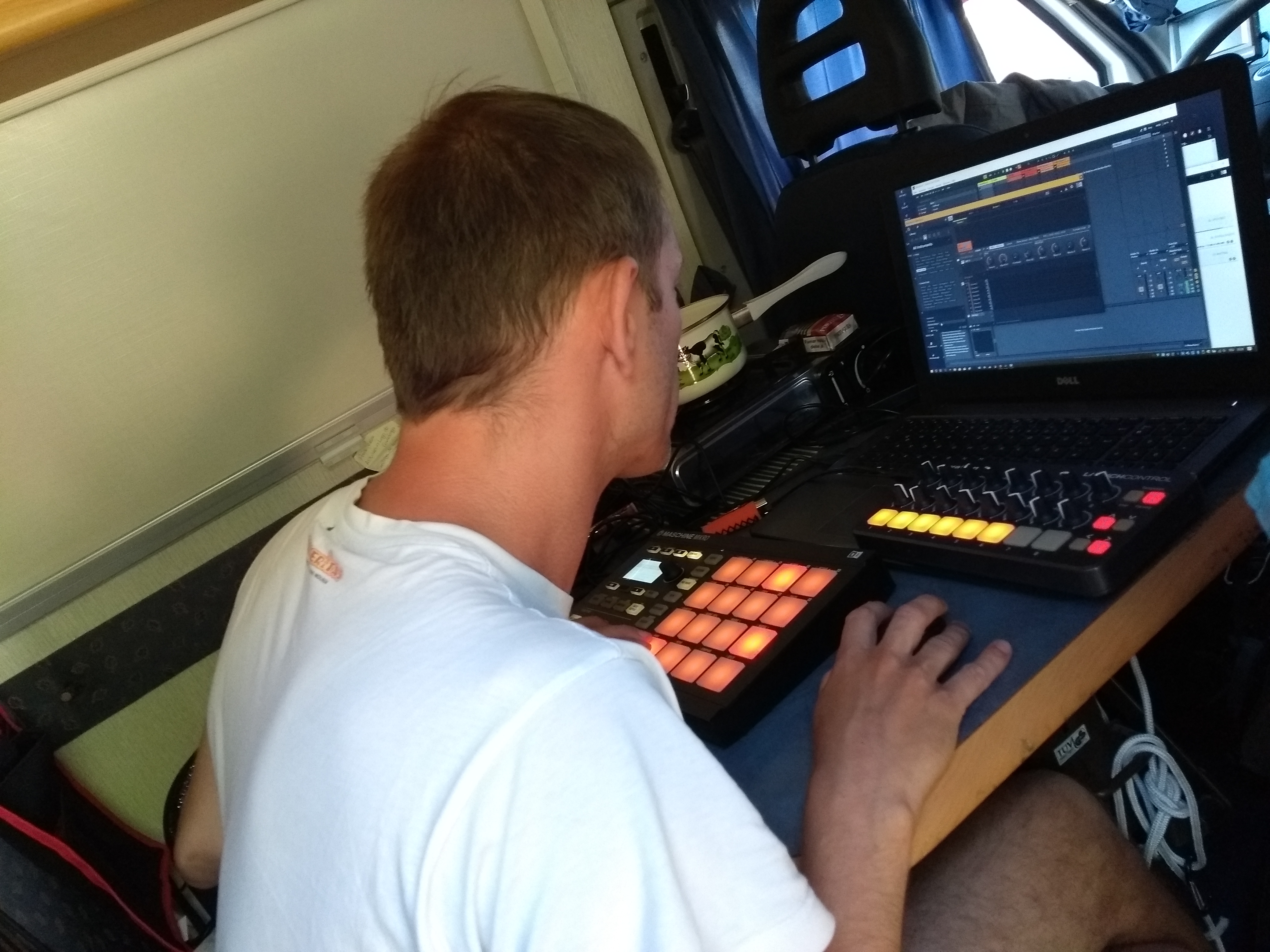 Während Gido am nächsten Tag Musik mit seiner Maschine macht…