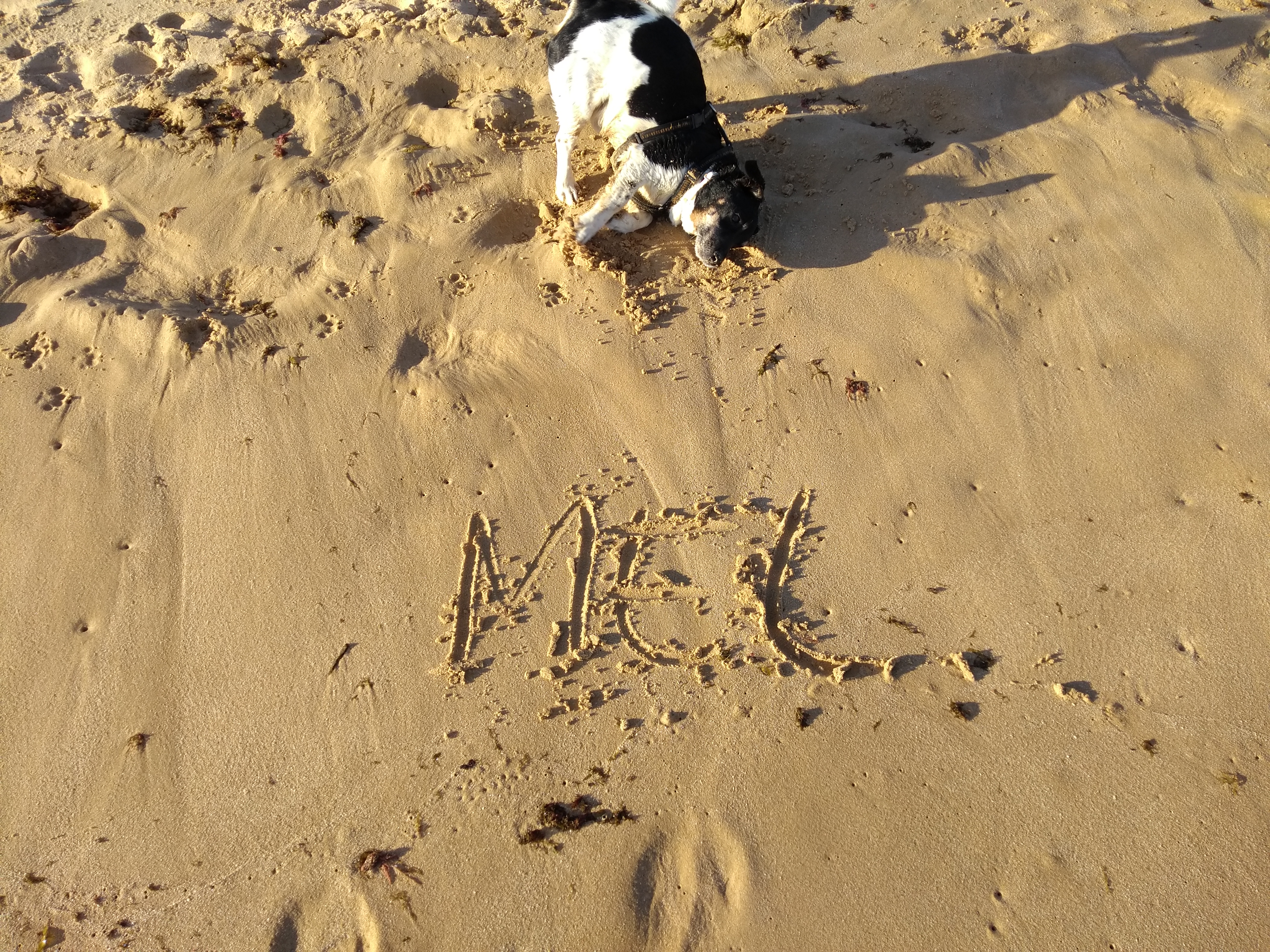 Hier an diesem weitläufigen Strand, etwa 40 min. Fußweg vom Platz entfernt, ist FKK erlaubt und nirgends steht etwas auf Schildern von Hundeverboten…