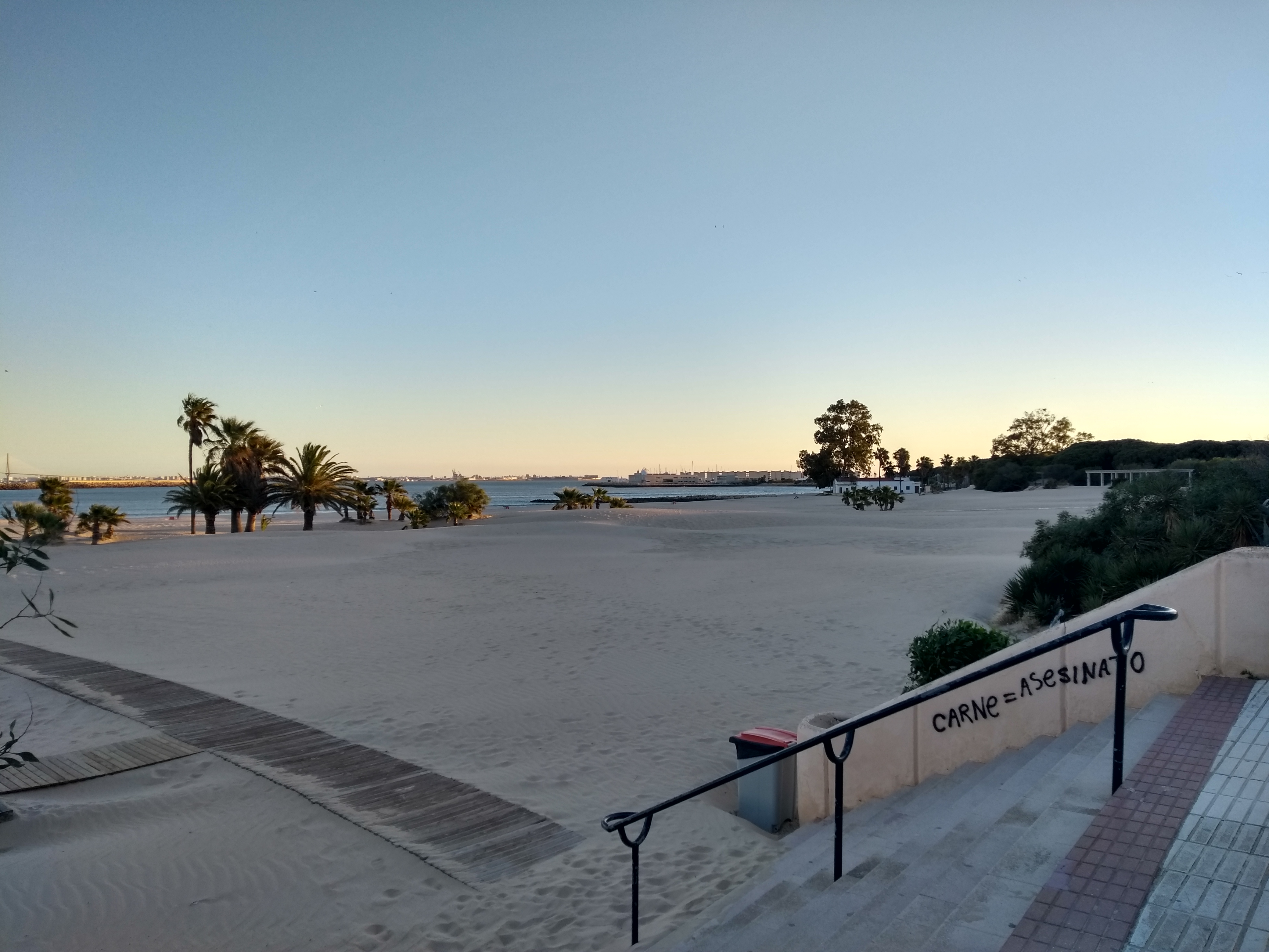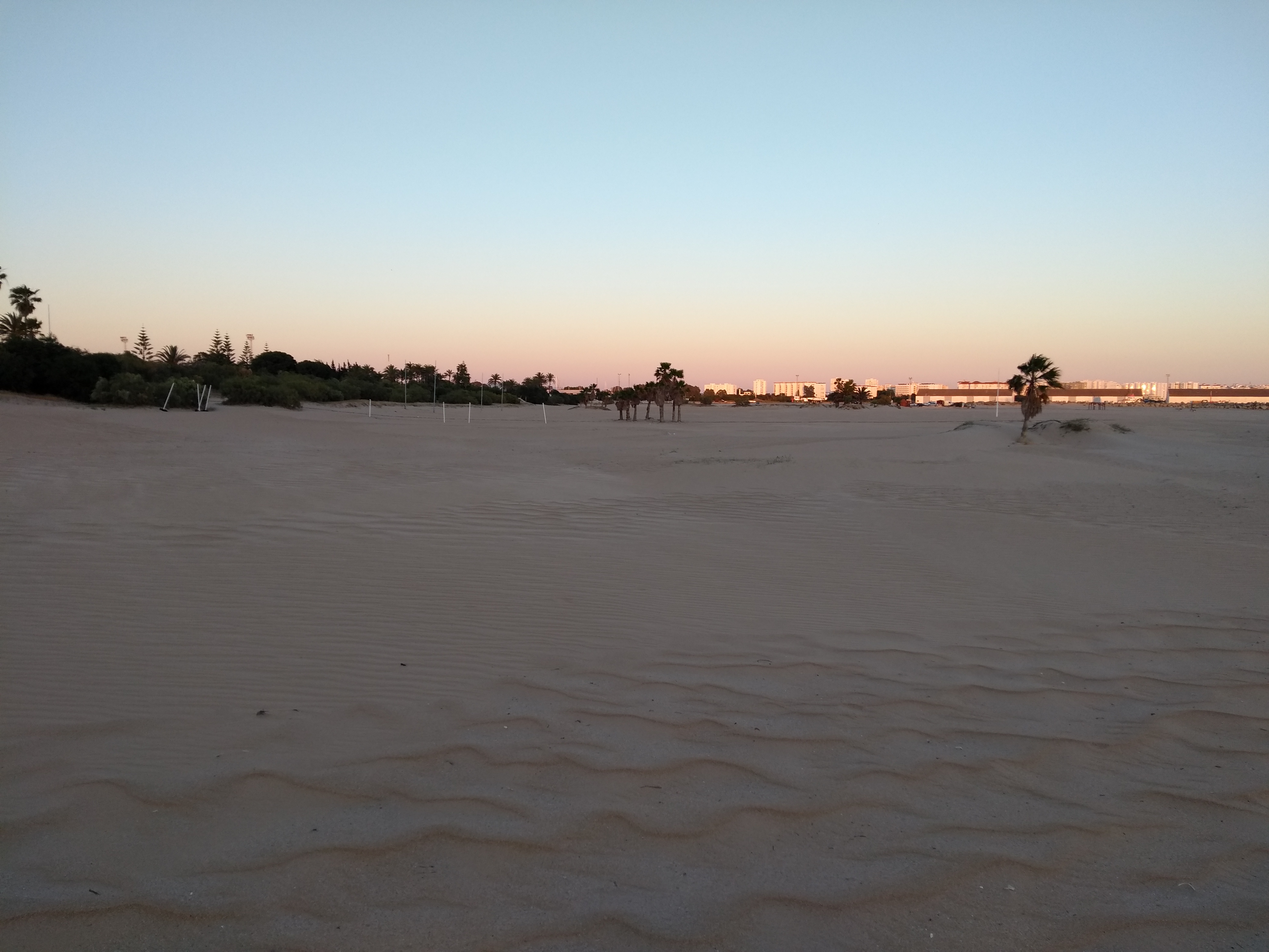 Da wir am späten Nachmittag anreisten konnten wir direkt die Abenddämmerung am wunderschönen Strand genießen. Im Hintergrund funkelt Cadiz…