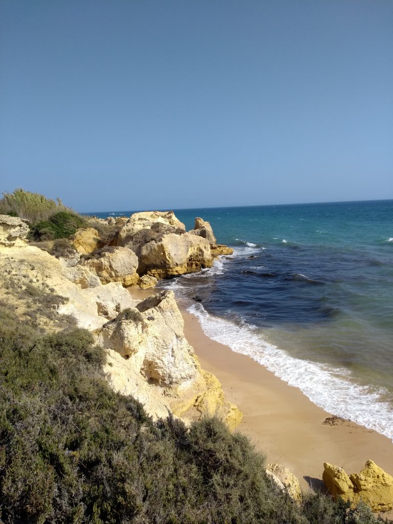 Also drehten wir wieder um und überlegten neu… Da die Straße auf der wir uns befanden direkt nach Albufeira führte, beschlossen wir uns dort mal umzuschauen. Gesagt getan. Wir haben einen fantastischen Stellplatz in Galé gefunden. Galé ist ein kleiner Vorort von Albufeira und liegt ca. 6 km von der Stadt entfernt. Für nur 7 € die Nacht konnten wir hier stehen. Mit Stromanschluss hätte es 9 € gekostet; wir wollten aber mal wieder unsere Solarmatte nutzen und so konnten wir für diesen Spottpreis mitten in der Saison diesen tollen Platz und die schönen Strände im Umfeld genießen…