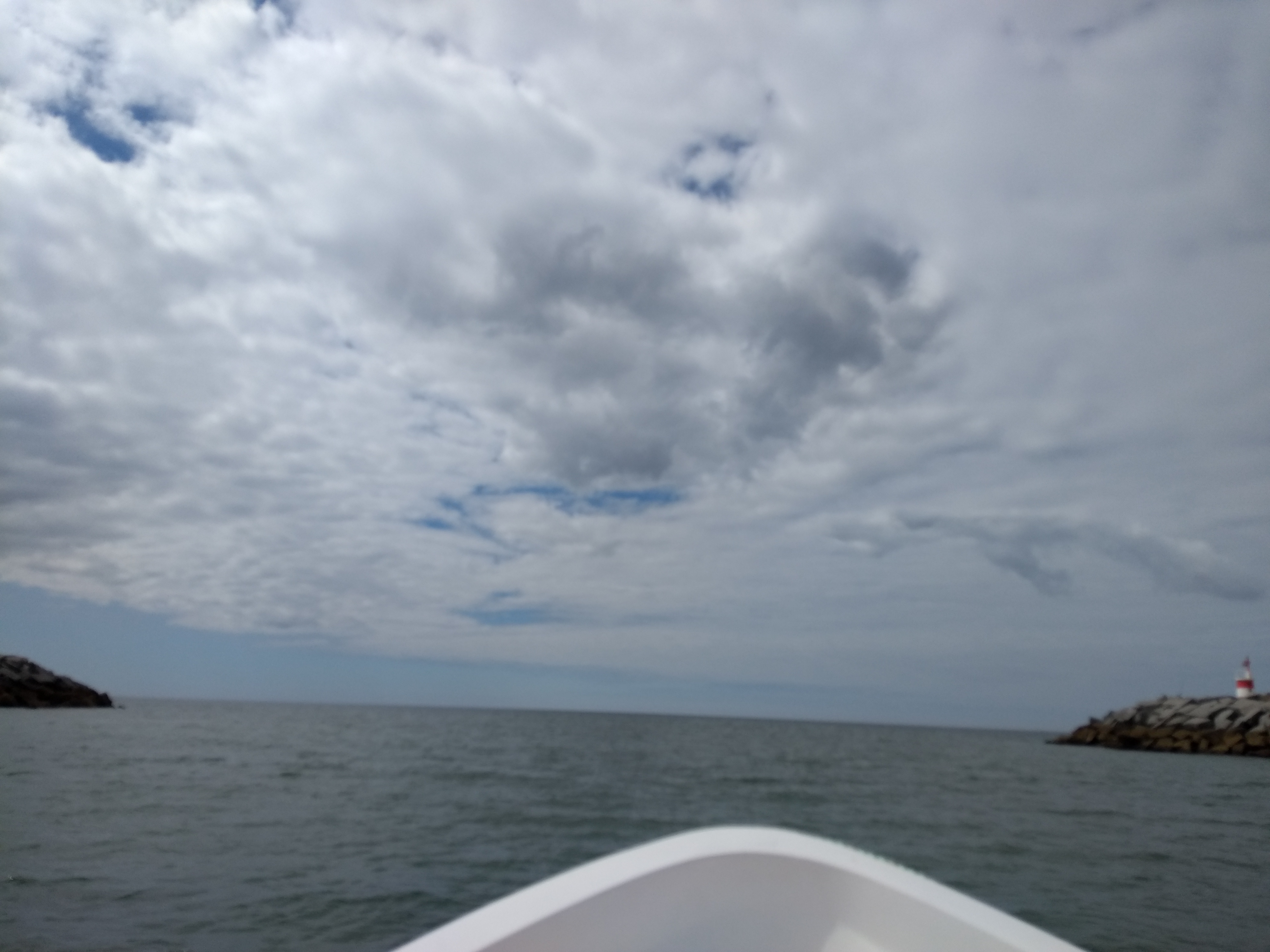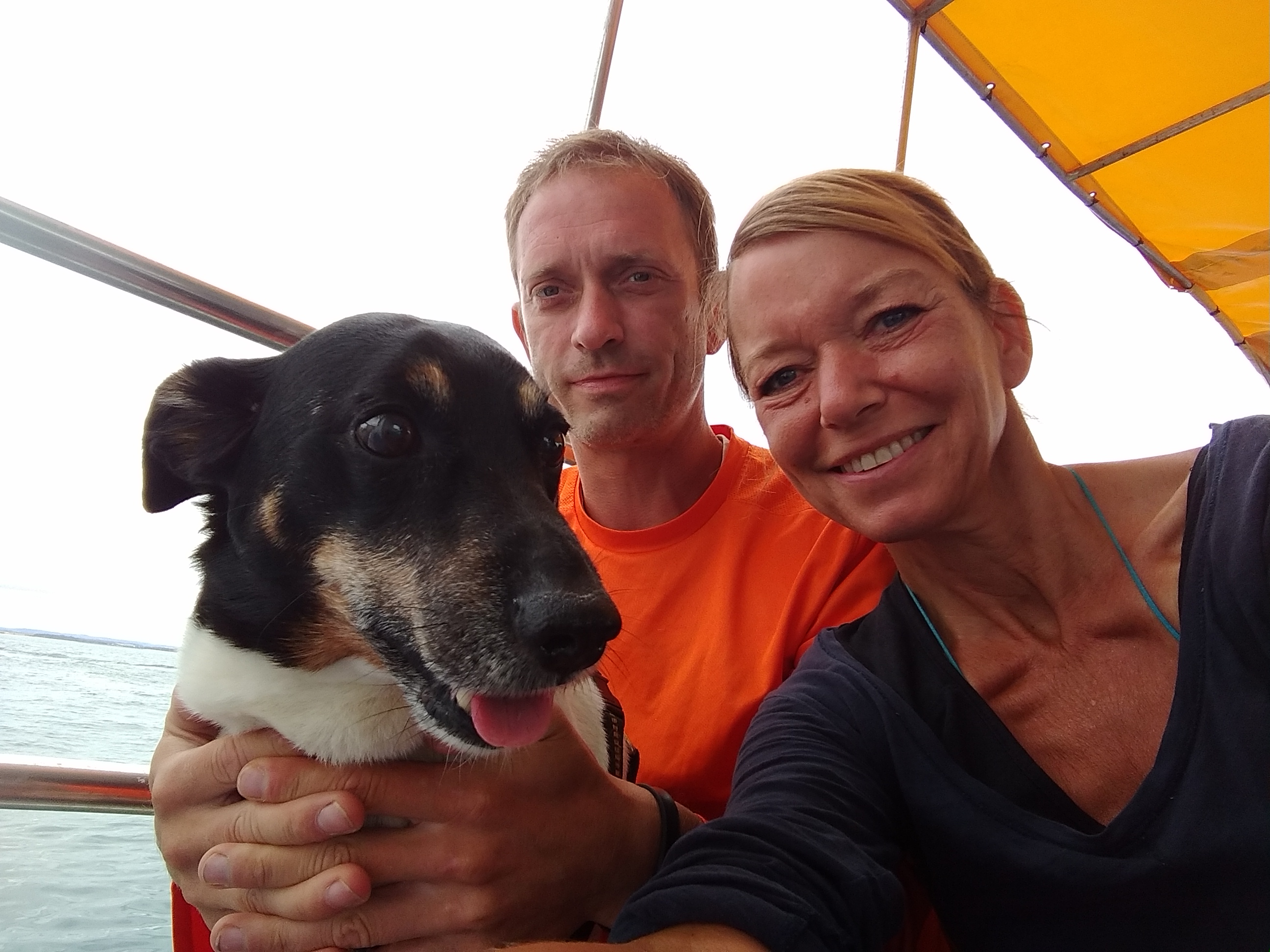 Ich sag euch, auch wenn ich jetzt schwimmen kann – mir war gaaanz schön mulmig! Hab mit dem Kiefer wie eine Klapperschlange geklappert… Aber alle Leute auf dem Boot haben mir gut zugeredt und ich hab mal wieder jede menge Streicheleinheiten abgesahnt… Also konnte ich mich bei diesen Annehmlichkeiten akklimatisieren… 🙂 Wer wird schon nicht gerne ausgiebig gestreichelt… 😉
