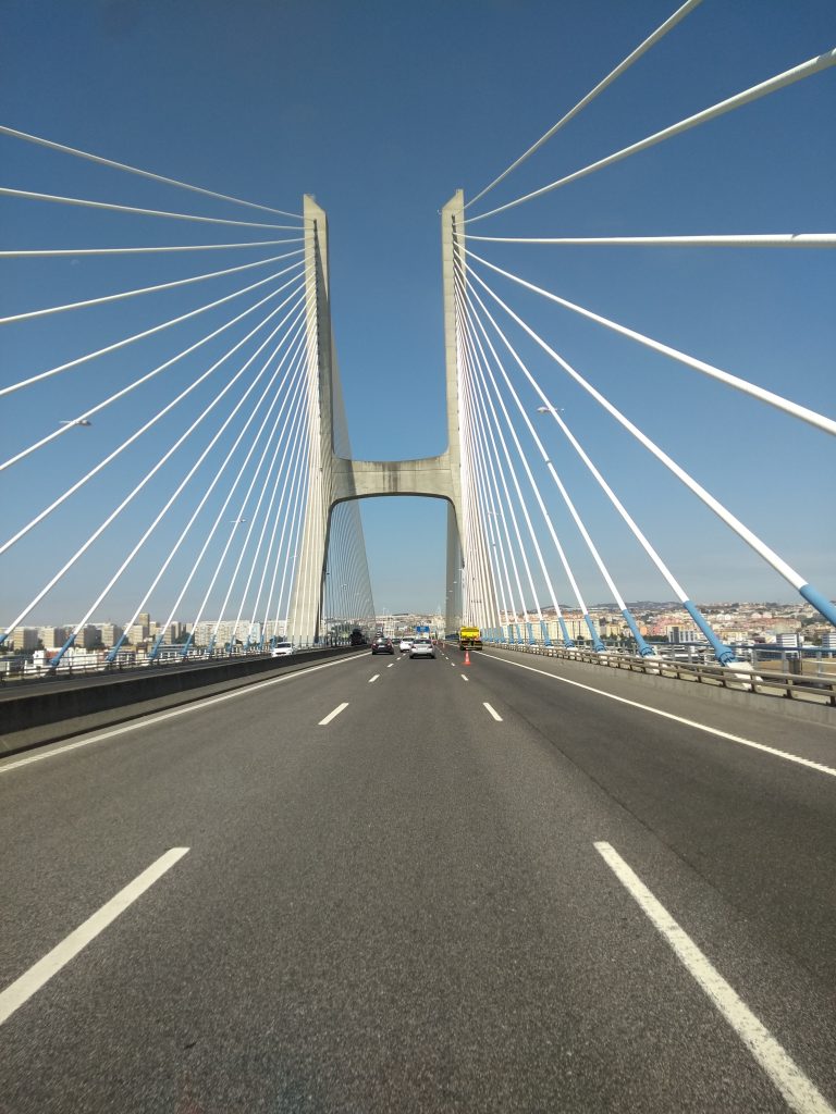 vorbei geht´s mal wieder an vielen Storchennestern. Mittlerweile wohnen die Störche hier schon mehrstöckig… 🙂 Gut, daß ich bereits in den Wechseljahren bin, sonst wäre ich bestimmt bald Mutter von mind. Drillingen… 🙂Über eine schöne und gigantisch lange Brücke geht es Richtung Lissabon..Allerdings lassen wir Lissabon hinter uns. Wir haben zuvor in Erfahrung gebracht, daß man dort kaum eine Lokalität mit Hund besuchen kann. Das würde unserem Timmy wohl nicht gefallen und so beschließen wir Lissabon in ferner Zukunft nochmal zu besuchen…