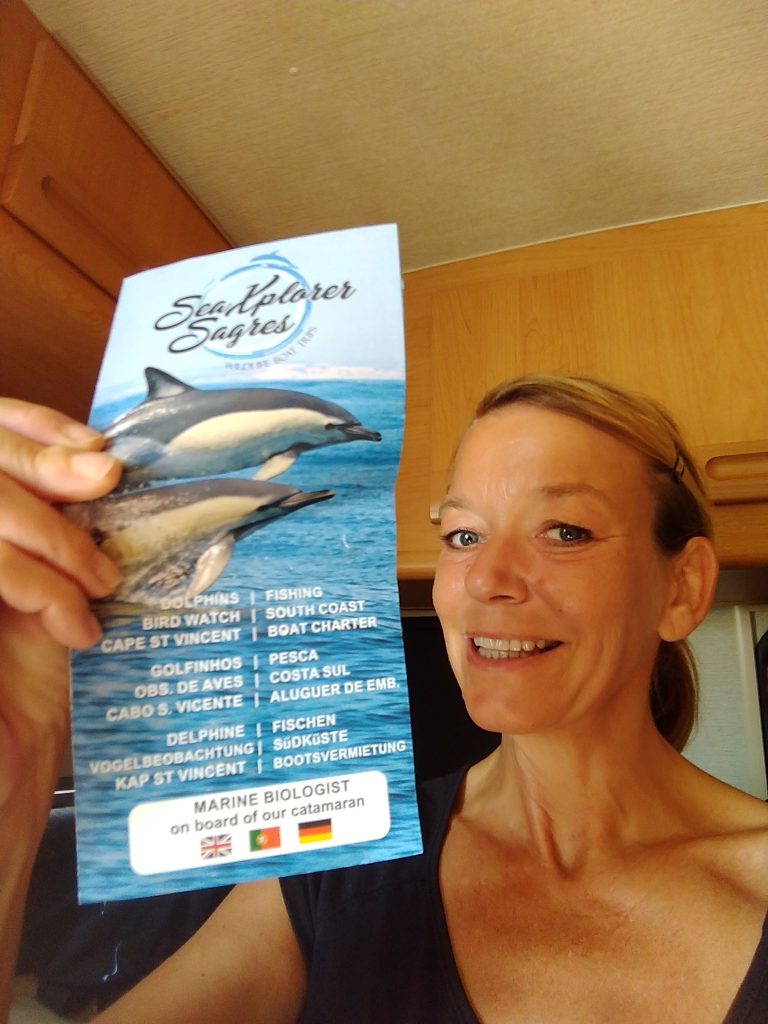 Aber eins nach dem anderen: Bereits vor Antritt der Reise habe ich mir Gedanken gemacht bei welchem Anbieter ich am besten eine Delfinsichtung fahre. Eigentlich hatte ich mir eine Meeresbiologin in Tarifa rausgesucht, die sich sehr für den Schutz von Meeressäugern einsetzt und von der ich zuvor eine Dokumentation im TV gesehen hatte… Doch in Tarifa kamen wir, wie schon bekannt, aus dem Feiern nicht raus… 😉 Also informierte ich mich auf der Weiterreise im Netz welche weiteren Möglichkeiten sich bieten würden. Schnell stieß ich auf das Gebiet rund um Sagres. Rund um Sagres liegt nämlich der Naturpark Südwest-Alentejo und Vicentinische Küste, der sich auf einer Länge von über 100 km von Porto Covo im Alentejo bis nach Burgau an der Algarve erstreckt. Es ist der am besten erhaltene Küstenstreifen in Europa, in dem man zahlreiche Tier- und Pflanzenarten beobachten kann! Wichtig bei der Wahl des Anbieters solcher Delfin- und Waltouren war es mir darauf zu achten, daß dies Artgerecht abläuft. Also ohne aufdringliches Hinterherjagen oder sogar anfüttern der Tiere!
