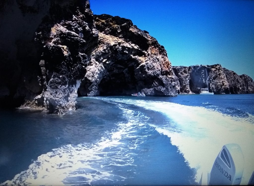 Nachdem wir dem Schwarm „lebewohl“ sagen mussten ging´s mit der SeaXplorer noch nahe der Steilküste entlang und in ein paar sehr schöne Caves hinein…