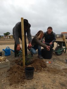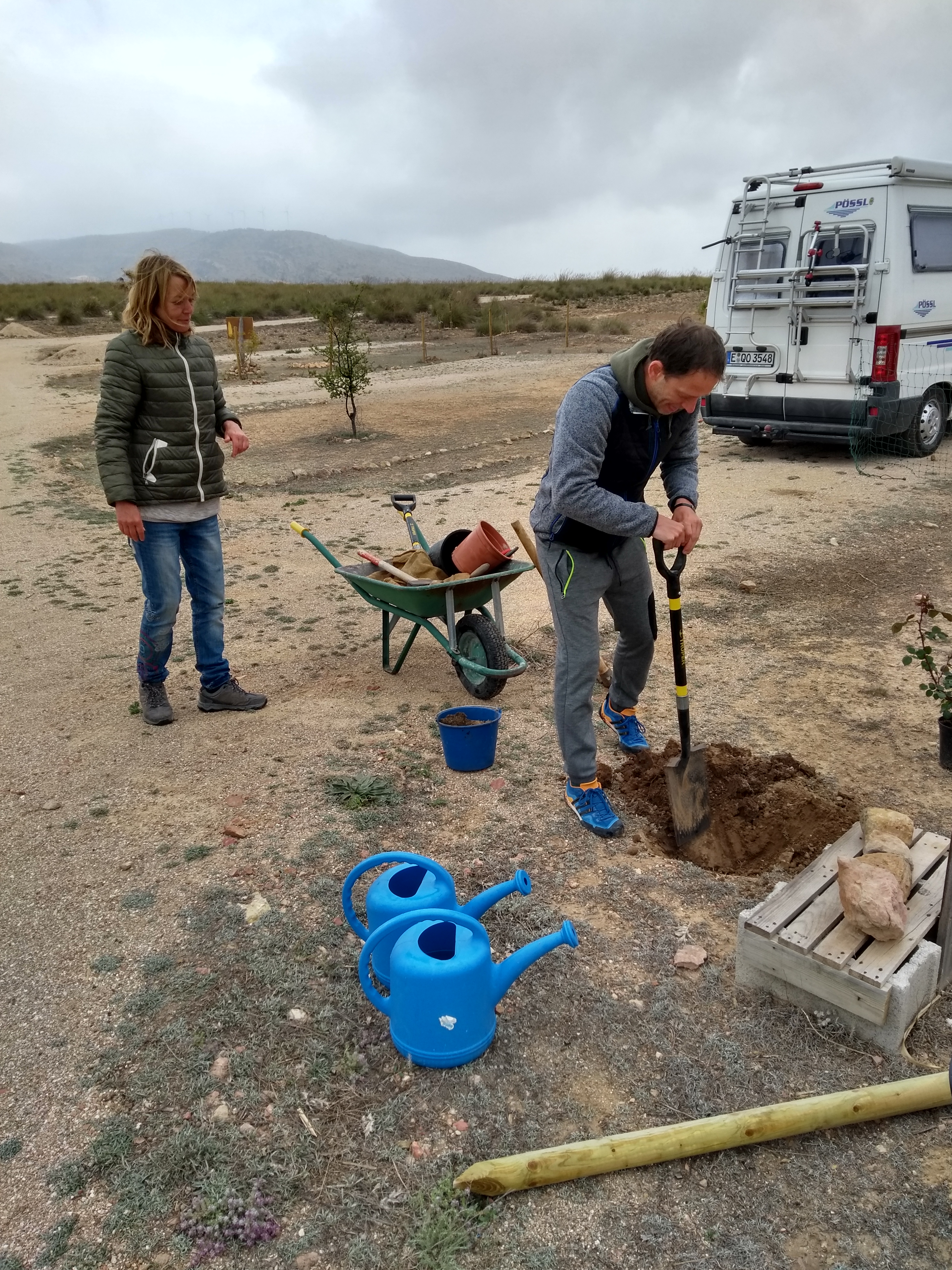 (Karin und Thomas haben eine Olive und einen Feigenbaum gepflanzt)